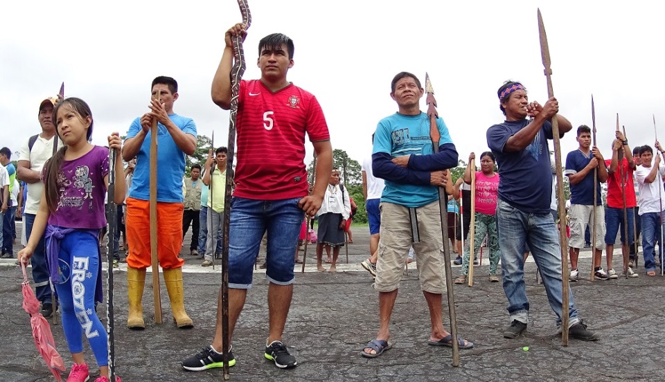 Guardias del pueblo Quechua del Pastaza en la pista de aterrizaje del aeródromo del Lote 192. Foto: Puinamudt