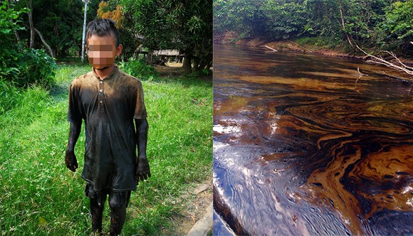 Advierten grave desatención tras derrame en Lote 192. Imagen muestra a menor cubierto de petróleo