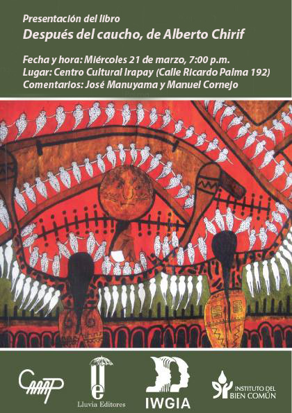 09:15|20 de marzo de 2018.- El antropólogo peruano Alberto Chirif presentará este miércoles 21 de marzo, en Iquitos, Después del caucho, su más reciente libro. La cita es a la 7 p.m. en el Centro Cultural Irapay, en la calle Ricardo Palma 192, a pocas cuadras de la Plaza de Armas.
