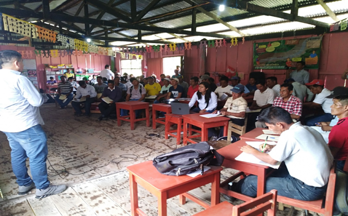 Taller del MTC sobre el proyecto Hidrovía en la comunidad nativa de Pampa Caño, en Nauta. Foto: Verónica Shibuya/ CAAAP