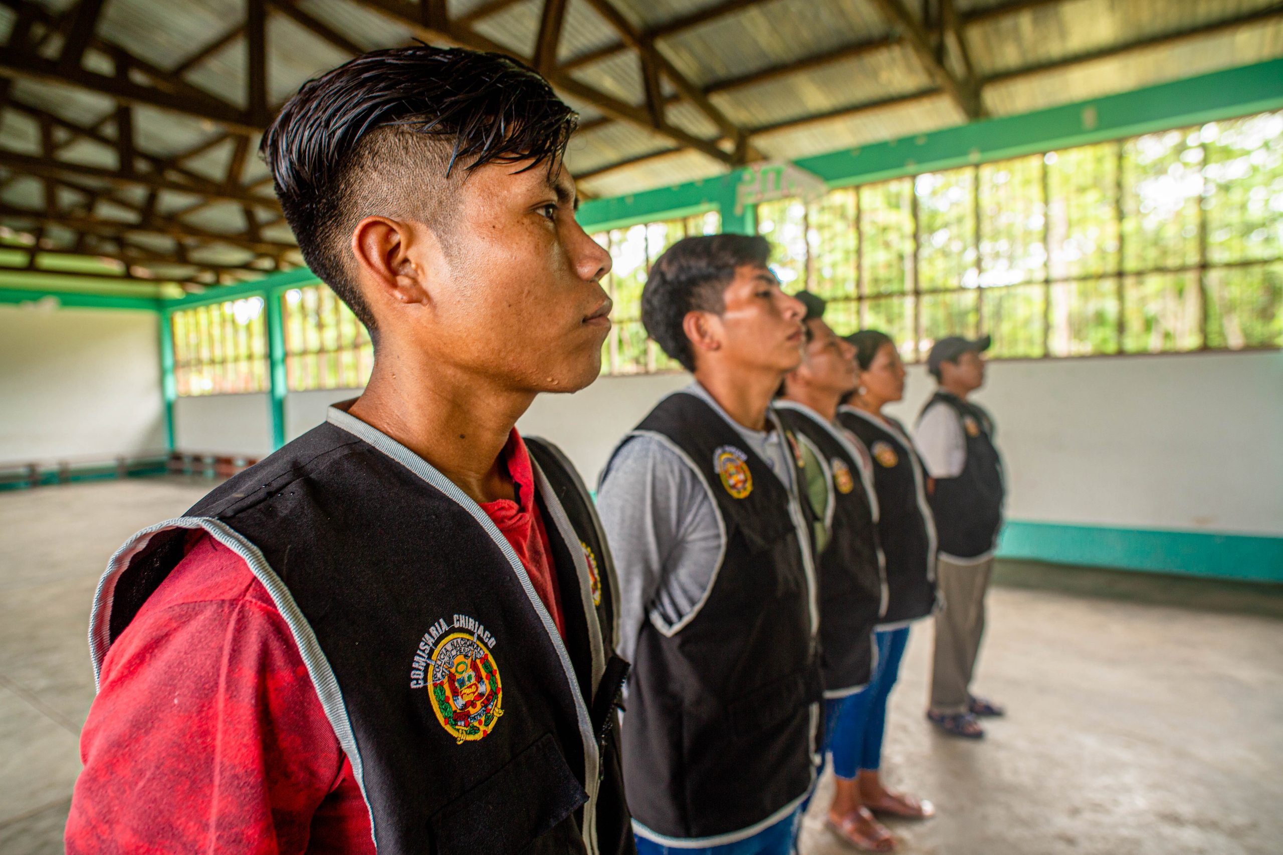 “Por el momento estamos en la misma comunidad, pero cuando hay un problema grave en los anexos de nuestra propia jurisdicción, la policía comunal también se desplaza para brindar seguridad”, explica Jesús Saan, apu (jefe) de Wachapea. “Y a veces, cuando la policía nacional necesita refuerzos, participamos en los patrullajes”, explica el apu.