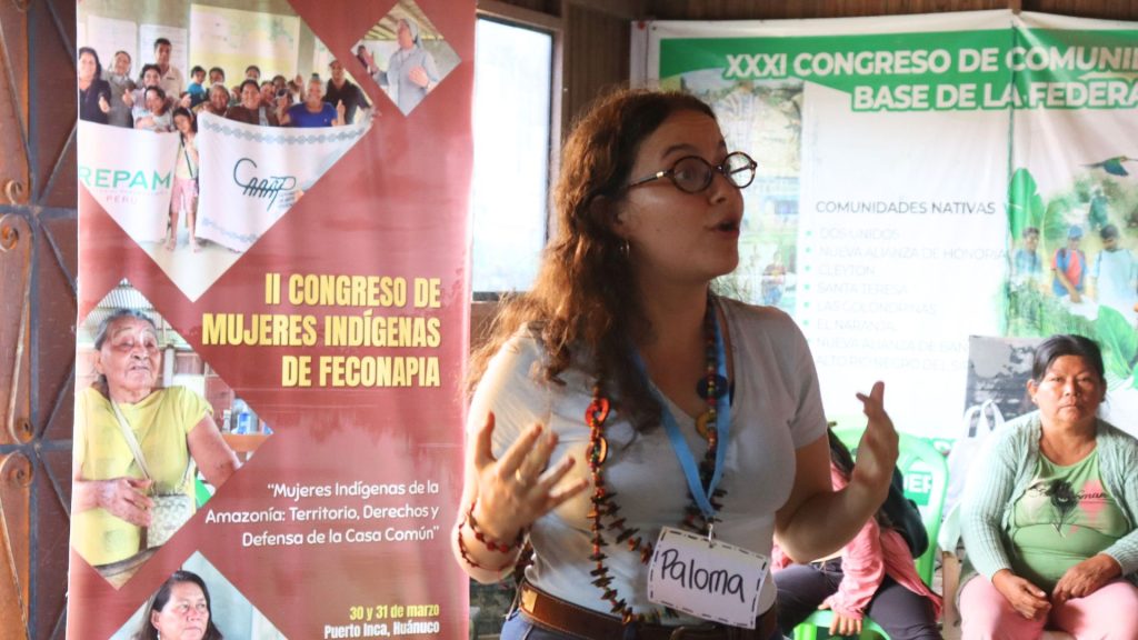 “Hemos formado comités de vigilancia, guardias indígenas… salimos a patrullar las comunidades, el territorio, para poder defenderlo y que no haya invasiones”, explicó Zoila Reátegui Pacaya, secretaria de FECONAPIA.